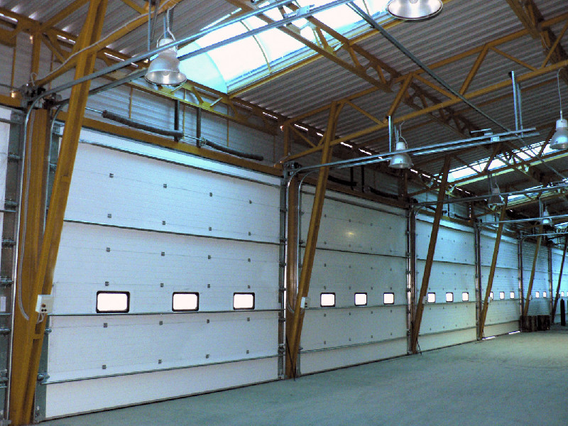 Промышленные подъемные секционные ворота могут оснащаться встроенной калиткой, окнами, ручным цепным приводом, автоматикой. ООО "Ворота-Сервис" предлагает продукцию известных производителей - Hörmann, Alutech, DoorHan, Ритерна, Дамаст.